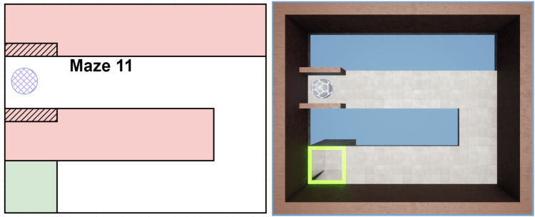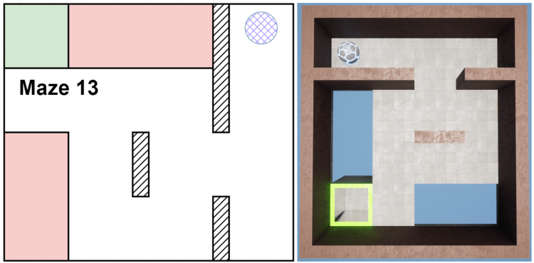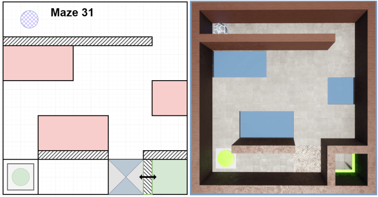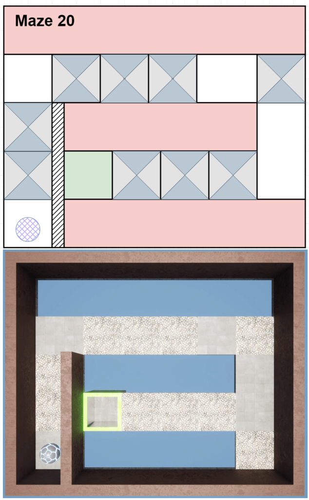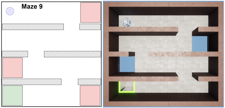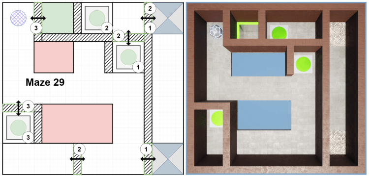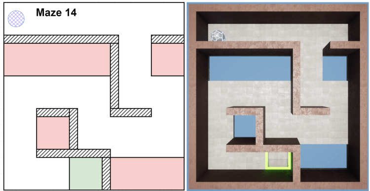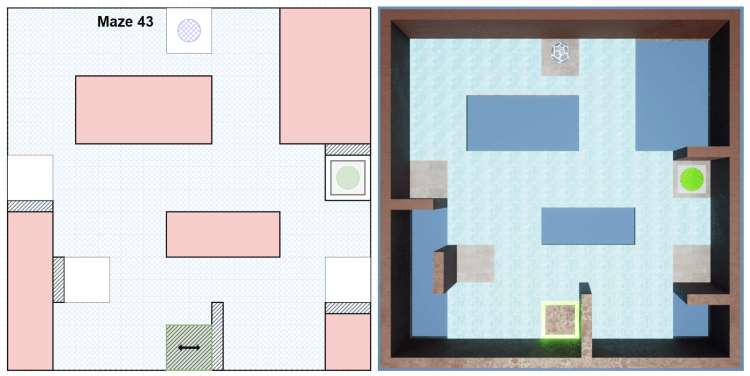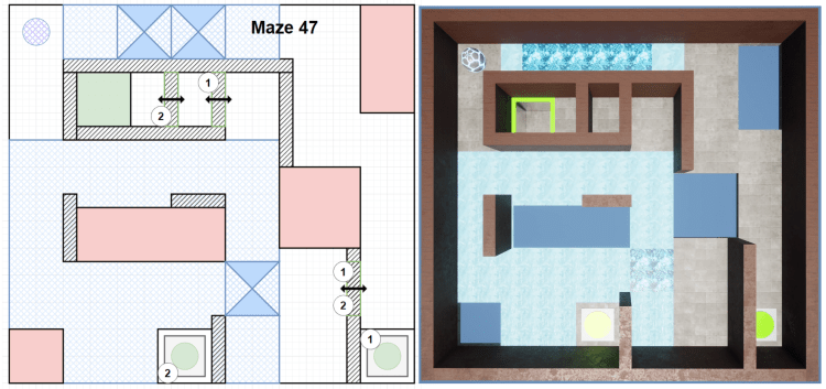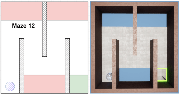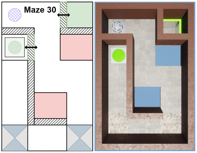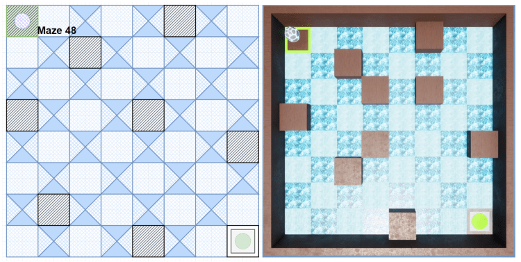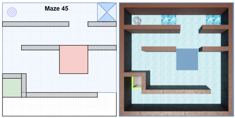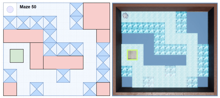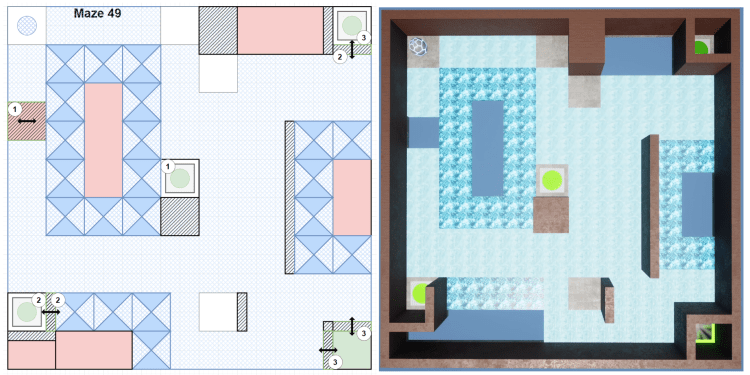 My favorite levels that best exemplify how I imagined the mechanic working come from Maze 43 & Maze 49, which I call my Pokémon-lite levels. I didn’t want the ice to take complete control from the player, but with a loss of friction this seemed like a fun design methodology to explore. Players could still navigate the mazes freely if they wished and were capable enough, but the Mazes were designed to have a “correct” path.