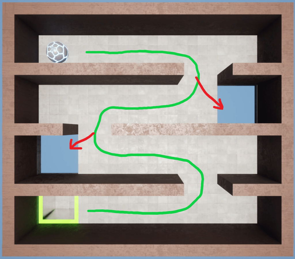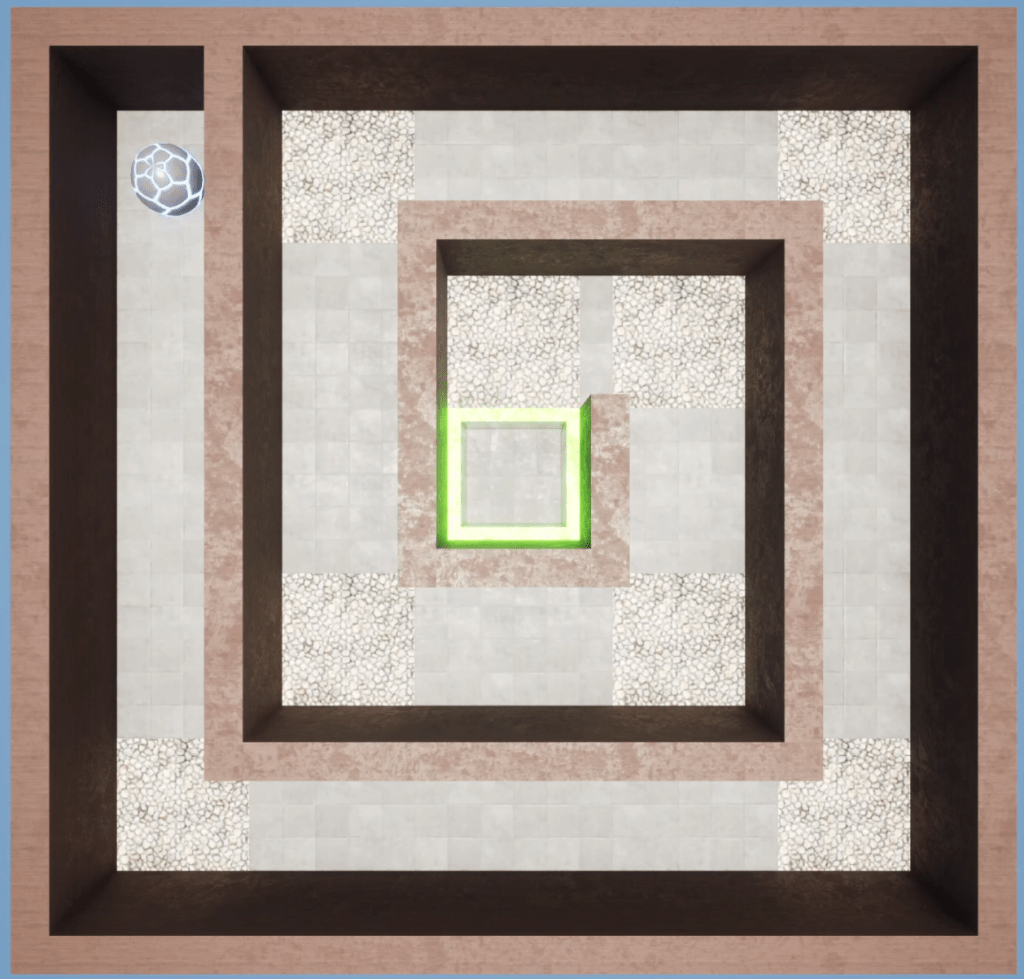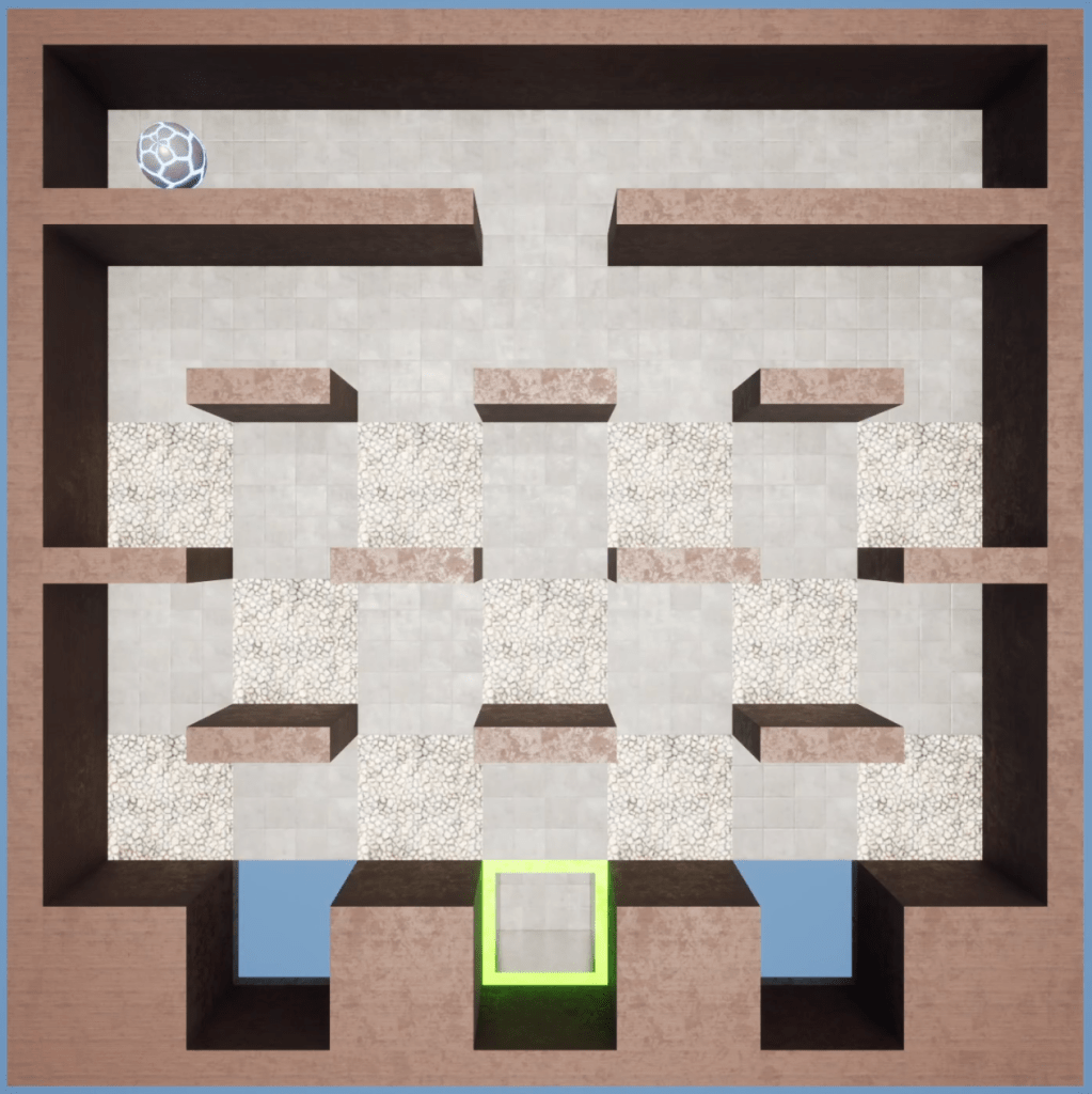 Player can attempt the level in full control, navigating carefully around corners but risking rolling into a pit.
