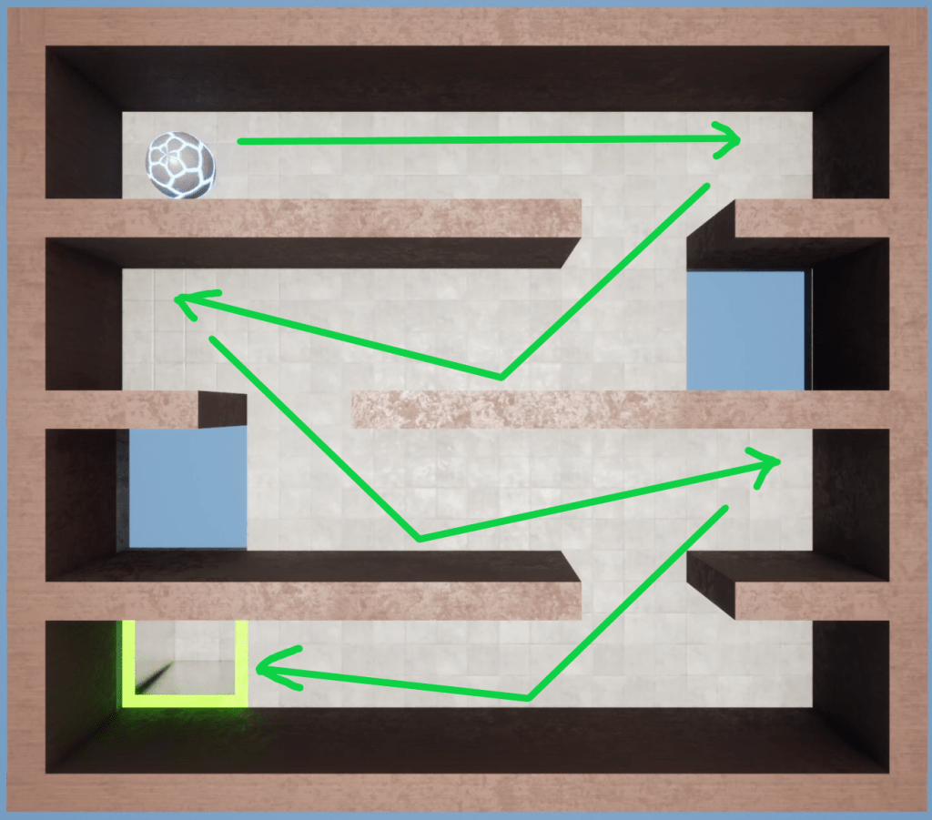 Design Goal: Challenge the player with the first altering of basic ball physics and require more precise control of the board than ever before.