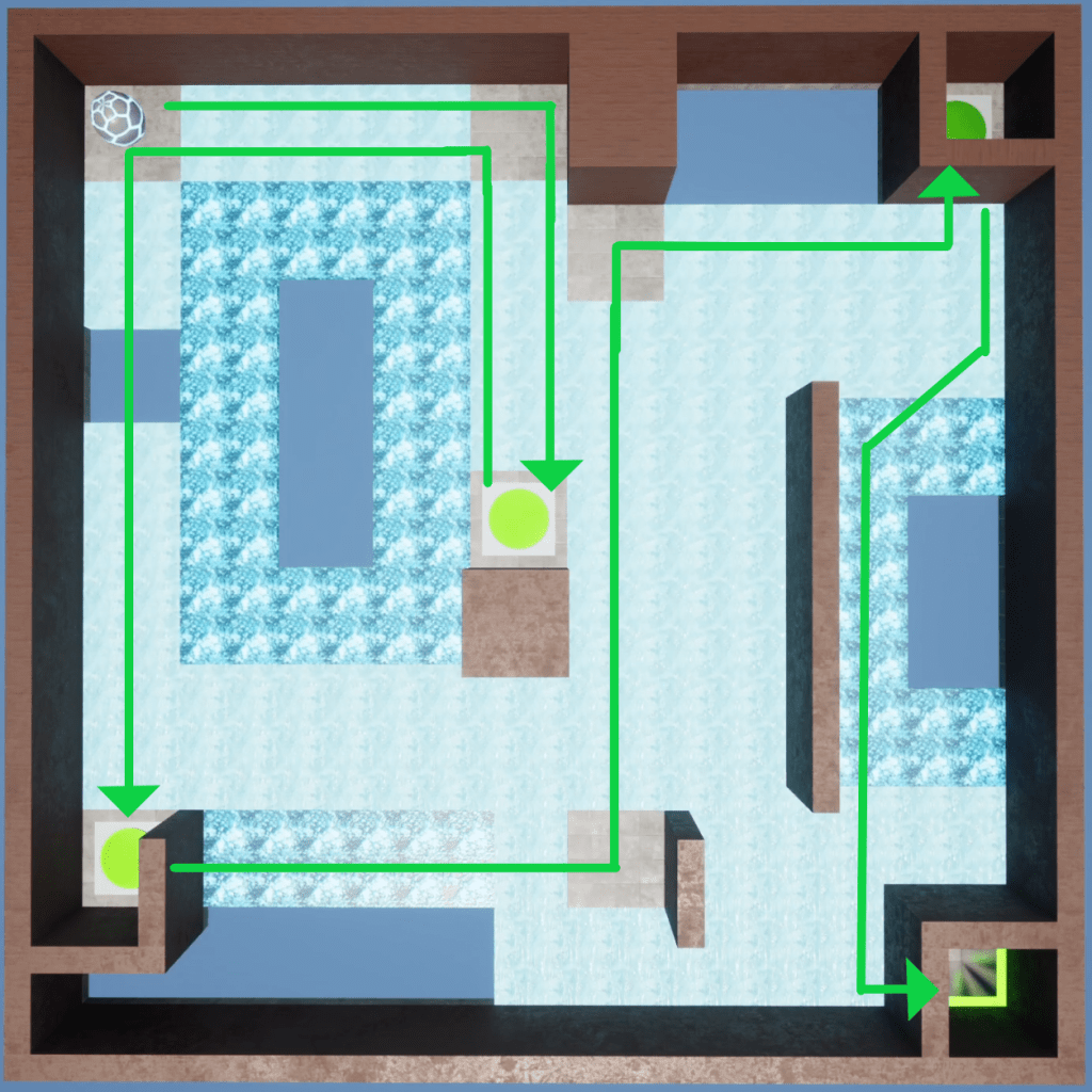 While I don’t inherently dislike this concept, I think I executed it poorly as it is entirely guessing, there are no indicators at all for the player on the correct path. However even if they were designed better, they are out of place among the rest of the levels. Every other level is linear, or allows the player to solve it. In hindsight, these two mazes simply don’t belong here.